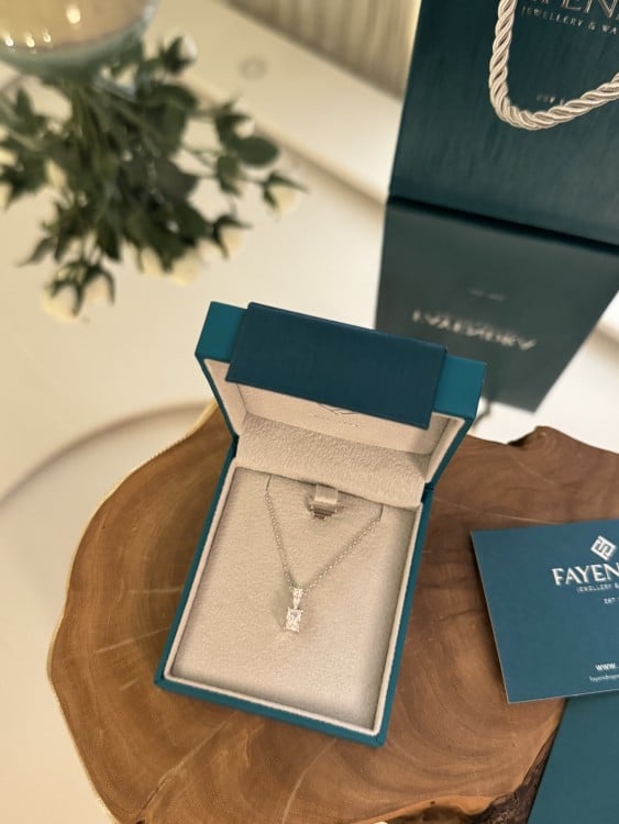 سلسال فضة 925 مطلي روديوم مرصع فص ابيض